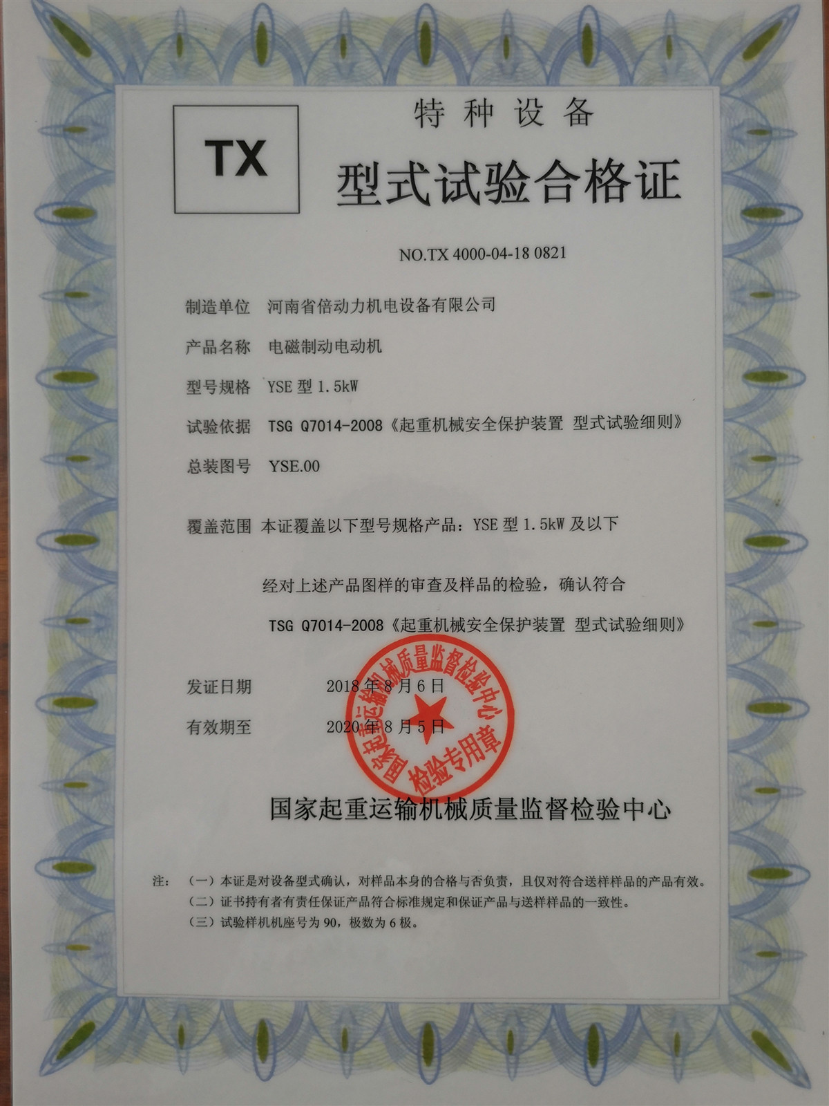 本證覆蓋以下型號規格產品:YSE型1.5KW及以下
