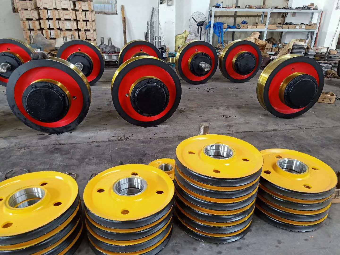 河南新鄉起重車輪組和滑輪組裝貨現場