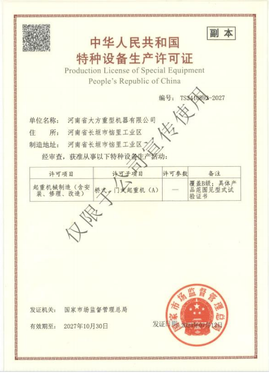 您當(dāng)前的位置:首頁(yè) » 榮譽(yù)資質(zhì) » 中華人民共和國(guó)特種設(shè)備生產(chǎn)許可證