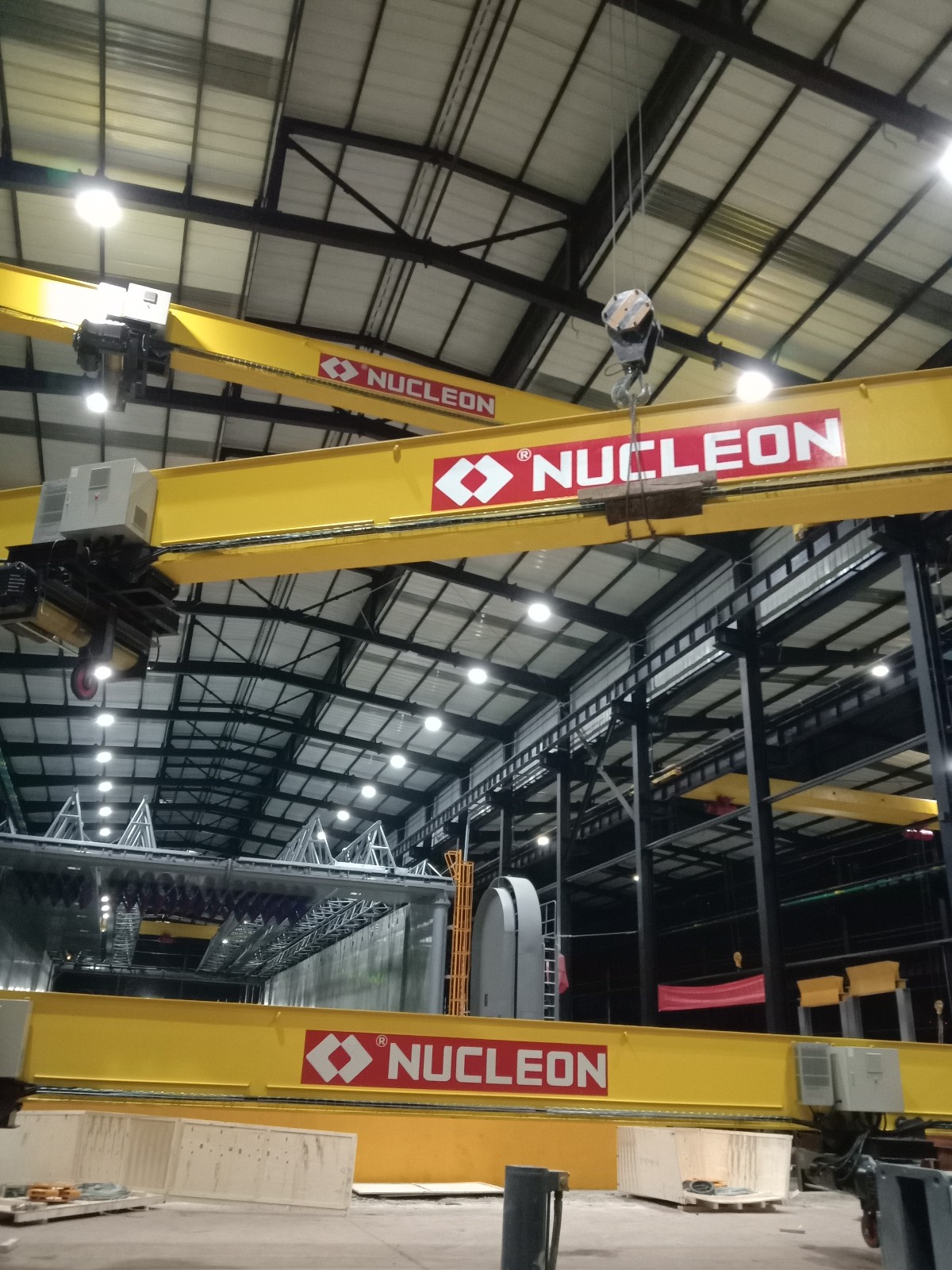 本公司主要生產產品有:(1)起重機類: 天車//行吊/行車單梁起重、雙梁起重機、電動葫蘆雙梁起重機、   起重懸臂、壁栓式懸臂起重機、旋臂起重、LX懸掛起重機、LH葫蘆雙梁起重機、花架門式起重機、雙梁抓斗起重機、QD吊鉤橋式起重機、QD冶金鑄造起重機、QE雙小車吊鉤橋式起重機、MH單主梁葫蘆門式起重機、MG雙橋吊鉤門式起重機、L單主梁門式起重機、升降平臺、電磁吸盤、電動平車、導軌貨梯類非標起重機的制造、改造、安裝、維修、保養等。 二、配套件類:各類國產進口電動(手動)葫蘆、防爆電動葫蘆、冶金電動葫蘆.雙制動電動葫蘆、雙速電動葫蘆、環鏈電動葫蘆、微型電動葫蘆、手拉葫蘆、單軌小車、電磁(永磁)吸盤、電纜卷筒、電動小車、電控柜、卷揚機、空壓機、電動機、減速機、液壓制動器、聯軸器、變頻器、控制器、遙控器、保護器、電阻器、緩沖器、安全滑線、電線電纜、抓斗抓具、吊具索具夾具、吊帶、吊鉤、起重鏈條.車輪組、公司有專業維修人員為客戶;維修,安裝,調試,檢修保養等業務。