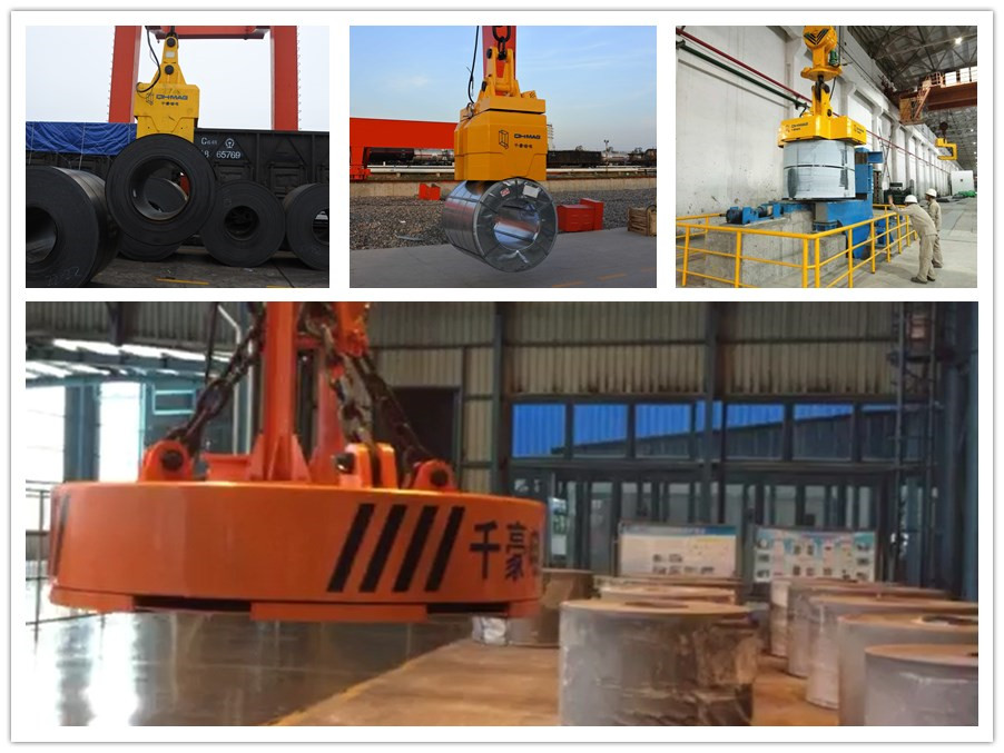 此系列電永磁吊分為立式、臥式等多種起吊方式。溫度有常溫100℃和高溫100℃~450℃兩種。我們案例中被吊運的鋼帶卷,多為冷軋鋼帶卷。冷軋鋼帶卷是通過對熱軋鋼板進行再軋制和冷軋制成的,它主要在汽車工業中廣泛用于車身制造,另外很多家用電器(如冰箱),散熱器,金屬家具的制造也離不開它。
