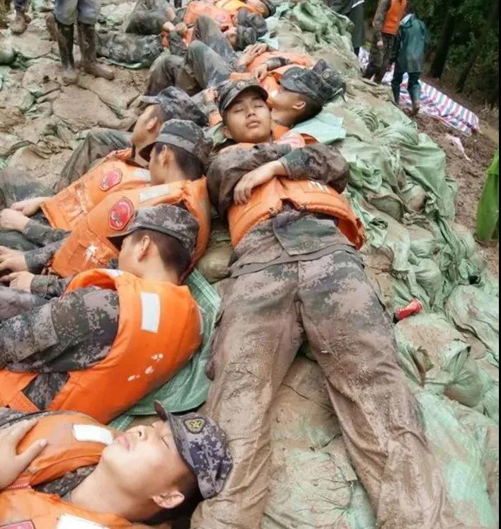 在這群“**可愛的人”連續作戰下,確保了各地險情得到及時控制。讓我們為抗洪救災的全體官兵加油,向"**可愛的人"致敬。