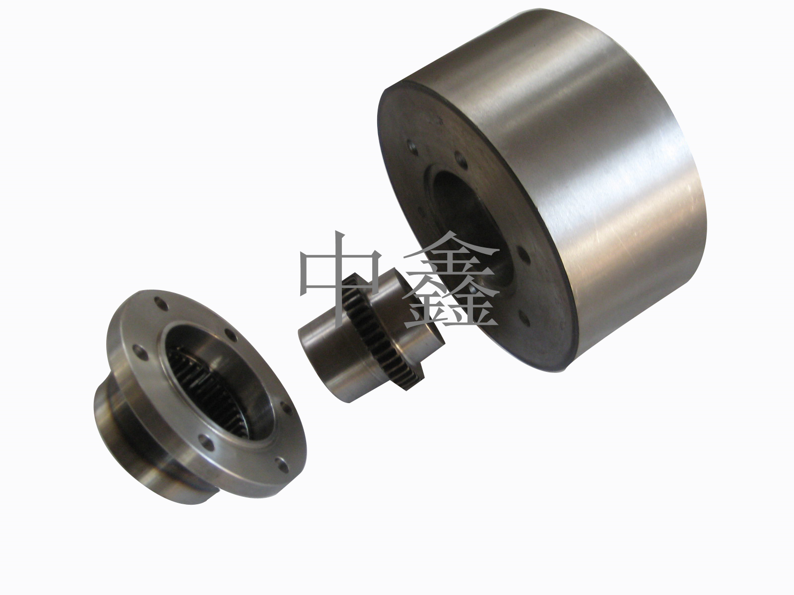 聯軸器又稱聯軸節。用來將不同機構中的主動軸和從動軸牢固地聯接起來一同旋轉,并傳遞運動和扭矩的機械部件。有時也用以聯接軸與其他零件(如齒輪、帶輪等)。常由兩半合成,分別用鍵或緊配合等聯接,緊固在兩軸端,再通過某種方式將兩半聯接起來。聯軸器可兼有補償兩軸之間由于制造安裝不精確、工作時的變形或熱膨脹等原因所發生的偏移(包括軸向偏移、徑向偏移、角偏移或綜合偏移);以及緩和沖擊、吸振。 [1]