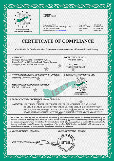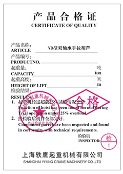 VD型號雙軸承手拉葫蘆認證