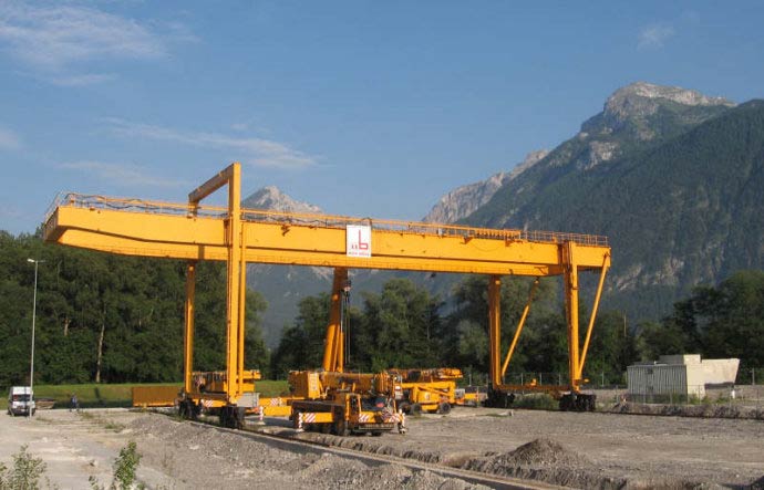 橋式起重機,是一種類型的起重機在工業(yè)環(huán)境中。高架起重機由平行的跑道組成,行進橋橫跨該間隙。一個葫蘆,起重機的起重部件,沿著橋行駛。如果橋在地面上固定在固定導軌上的兩個或多個支腿上受到剛性支撐,則該起重機稱為龍門起重機或巨人起重機。