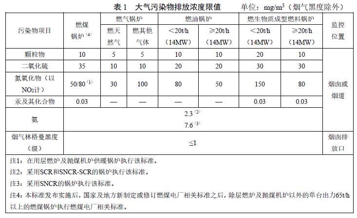 2020年11月1日起,在用鍋爐執(zhí)行表1規(guī)定的大氣污染物排放標準;新建鍋爐自《標準》實施之日起執(zhí)行表1規(guī)定的大氣污染排放限值。