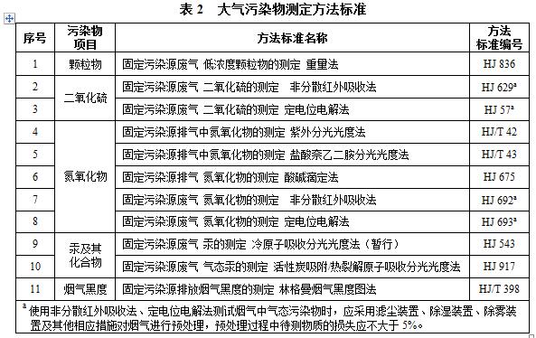 燃煤電廠大氣污染物測定分析方法見表2。本標(biāo)準(zhǔn)實(shí)施后國家發(fā)布的污染物監(jiān)測方法標(biāo)準(zhǔn),如適用性滿足要求,同樣適用于本標(biāo)準(zhǔn)相應(yīng)污染物的測定。