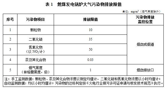 1、自《標(biāo)準(zhǔn)》實(shí)施之日起,新建燃煤發(fā)電鍋爐執(zhí)行表1規(guī)定的排放限值。