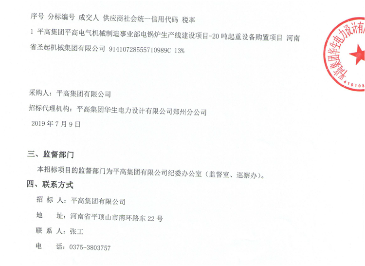 移動版:平高集團平高電氣機械制造部電鍋爐生產(chǎn)線建設項目-20噸起重設備購置(二次)(競爭性談判)成交結(jié)果公告