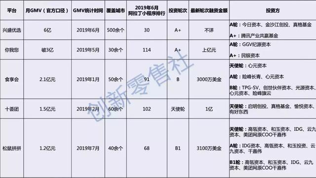 而且,資本派系問題也是阿里投資十薈團(tuán)的一個(gè)重要原因。在TOP 5平臺(tái)里面,興盛優(yōu)選已被今日資本(曾投資京東)和騰訊投資,而松鼠拼拼則有很強(qiáng)的美團(tuán)背景,在這樣的情況下,阿里的可選項(xiàng)已經(jīng)不多”。