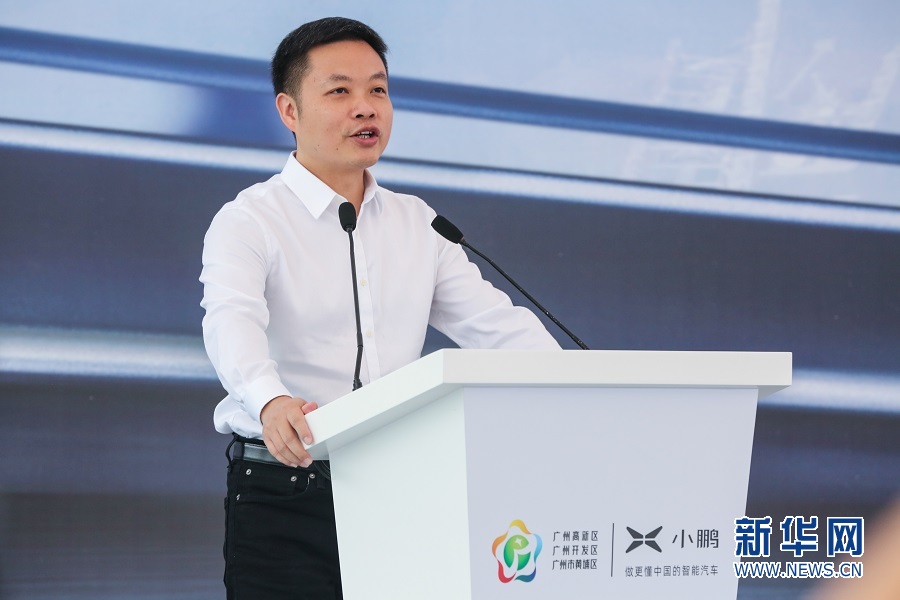 小鵬汽車董事長兼CEO何小鵬在奠基儀式上發表講話。新華網發