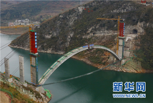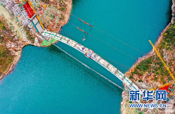 拱橋在進行合龍施工。新華網發(楊良強 攝)