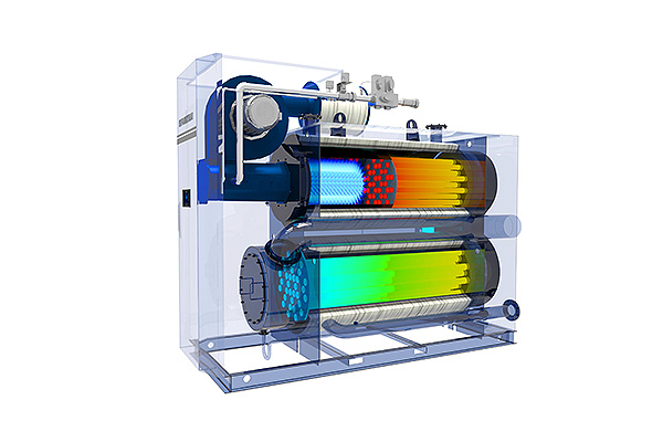 鍋爐采用一體化設(shè)計(jì),提升換熱面積,較傳統(tǒng)冷凝鍋爐占地面積減小20-40%。