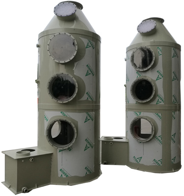 2、凈化塔凈化效率高:酸(堿)霧廢氣凈化塔采用二級逆向噴淋,填料比表面積大,由試驗研究確定的氣比保證了性能穩(wěn)定,對各種濃度的酸性(或堿性)廢氣凈化效率均可達85%~95%。