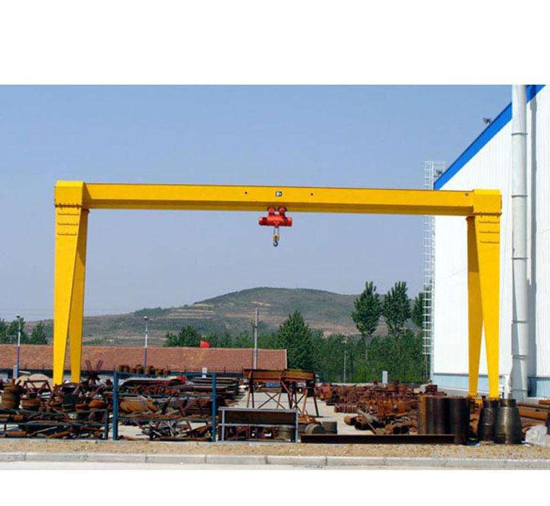 它的金屬結(jié)構(gòu)像門形框架,承載主梁下安裝兩條支腳,可以直接在地面的軌道上行走,主梁兩端可以具有外伸懸臂梁。