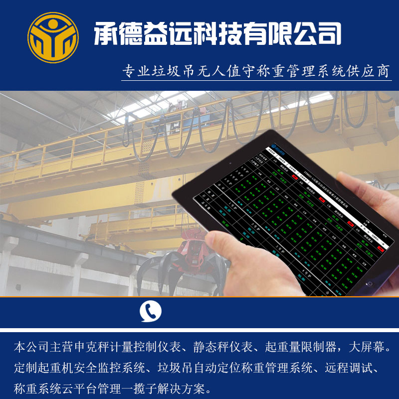 YY9800-L垃圾吊自動定位稱重計量管理系統(專利號:ZL0.3)**是為解決垃圾與燃料煤混合配比而開發研制的。