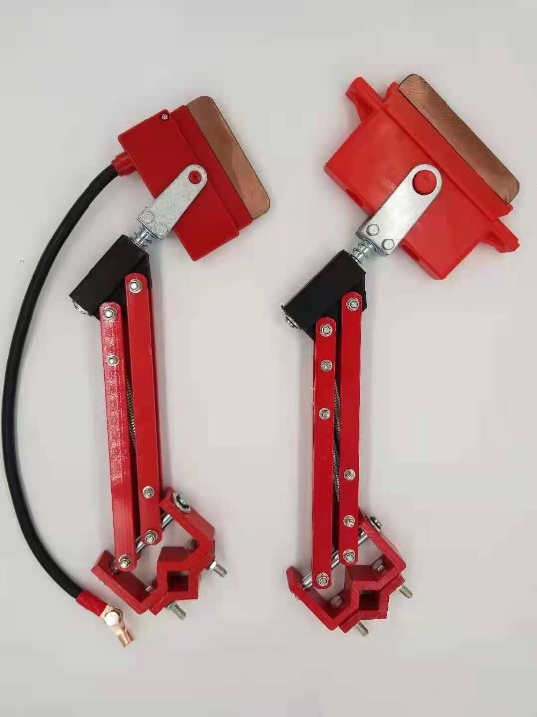 集電器滑觸線系統中集電側拾取電能的主要裝置,它通過集電刷與導軌的滑動接觸,將電能直接傳導至用電器,從而實現系統的移動供電。集電器由機械結構的張力裝置和直接與導軌滑動接觸的集電刷兩部分組成。